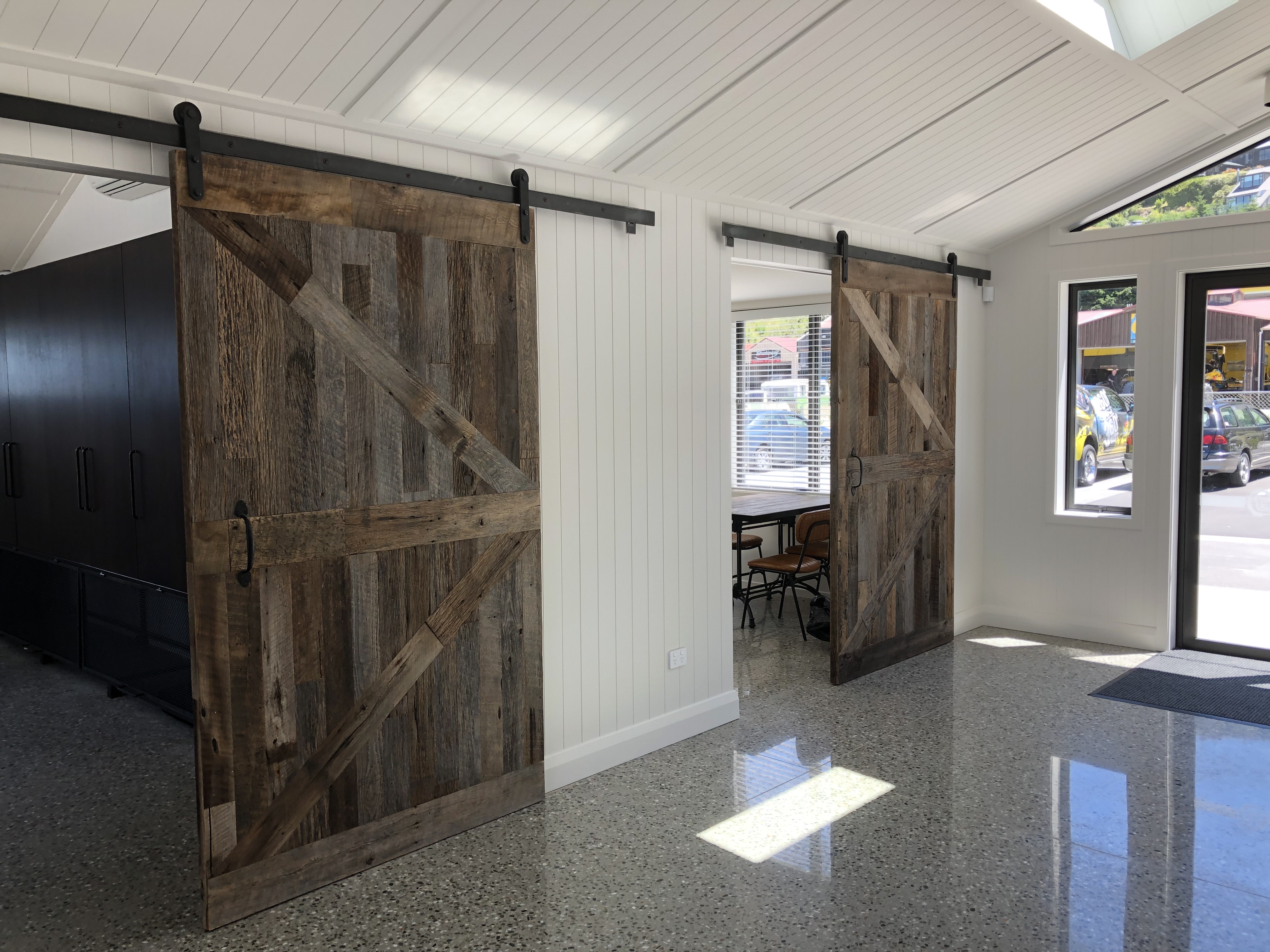 - Custom barn door sliders made from the flooring of your choice.