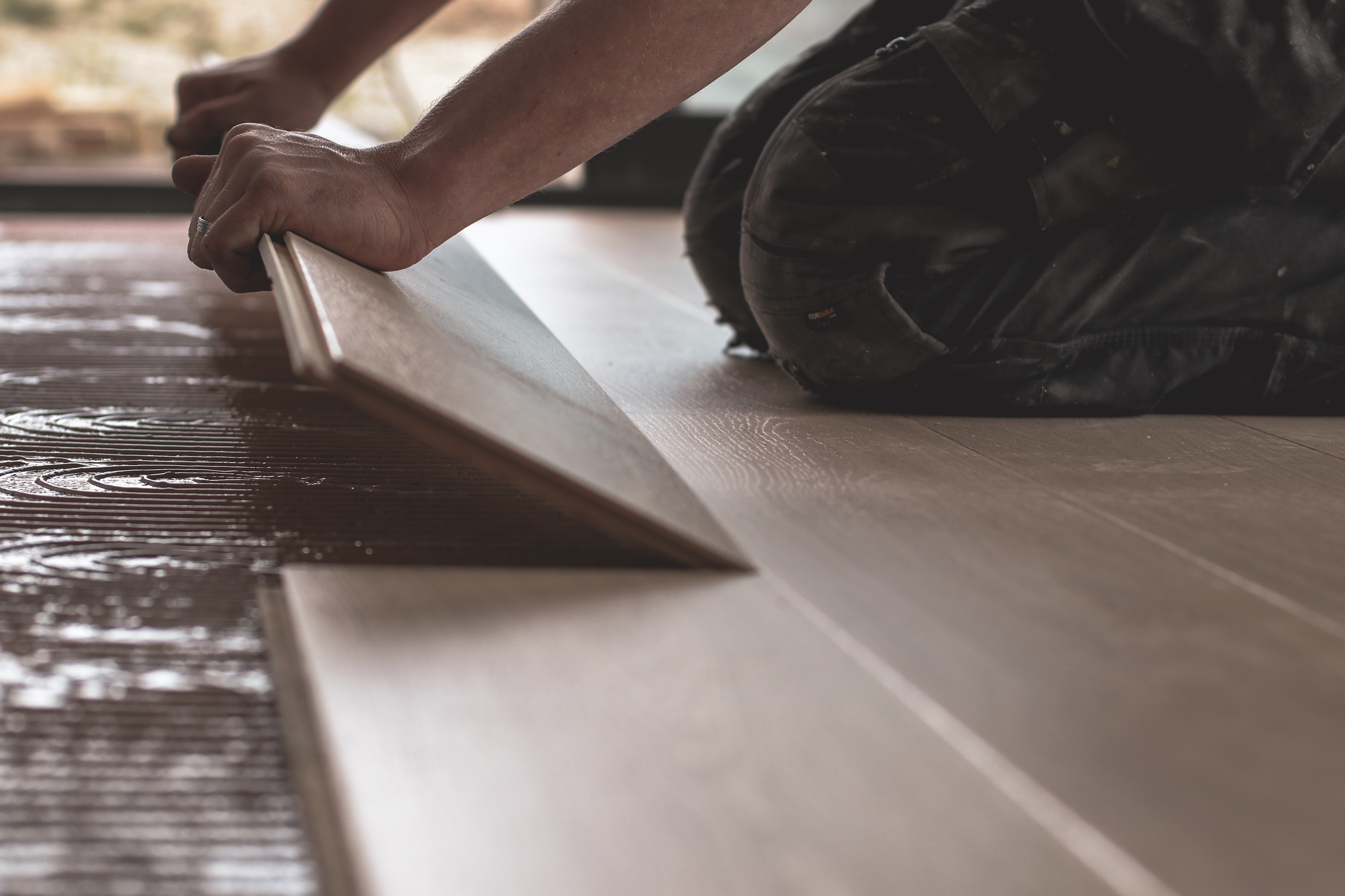 - Installation of timber flooring, glued or floating.